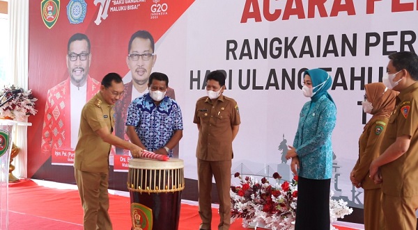 AMBON- Wakil Gubernur Maluku, Drs. Barnabas. N. Orno membuka secara resmi Pencanangan Rangkaian Kegiatan Perayaan Hari Ulang Tahun Provinsi Maluku ke-77 Tahun 2022 bertempat di Tribun Lapangan Merdeka Selasa (2/8/22).
