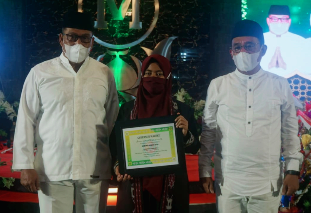 AMBON– Usmiatun Usman, Kafilah Provinsi Maluku yamh menjadi juara III Cabang Tilawah pada ajang Musbaqoh Tilawatil Qur’an (MTQ) ke-28 Tingkat Nasional di Kota Padang, Provinsi Sumatera Barat, beberapa waktu lalu mendapat hadiah umroh dan bonus uang.