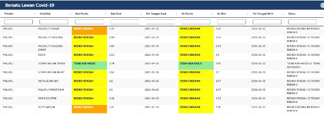 “Minggu terakhir bulan April, Ambon masih berada di zona oranye atau resiko sedang, dengan skor 2,31 dan kita bersyukur dengan kenaikan skor kota Ambon, pada awal Mei kita dapat berpindah ke zona kuning atau resiko rendah,” kata Jubir.