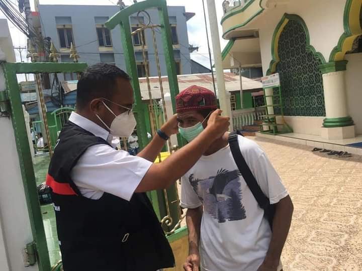 Ambon -Satuan tugas (satgas) Covid-19 Kota Ambon dan Organisasi Perangkat Daerah (OPD) Jumat (4/12/2020) melakukan pemantauan protokol kesehatan dan melakukan pembagian masker kepada para Jamaah di Masjid di Kota Ambon.