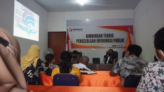 Demikian disampaikan Kepala Dinas (Kadis) Kominfo dan Persandian Kota Ambon, Joy Adriaansz, saat memberikan materi Bimbingan Teknis (Bimtek) Pengelolaan Informasi Publik kepada anggota dan staf Badan Pengawasan Pemilu (Bawaslu) kota Ambon, Kamis (4/3/2021) di Aula Kantor Bawaslu Kota Ambon.