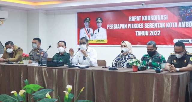 AMBON-Menjelang Pemilihan Kepala Desa (Pilkades) pada 7 April 2022 mendatang, Pemerintah Kota (Pemkot) Ambon menjelang rapat koordinasi bersama Forum Komunikasi Pimpinan Daerah (Forkopimda) Kota Ambon, di Hotel Pasifik, Selasa (5/4/2022).