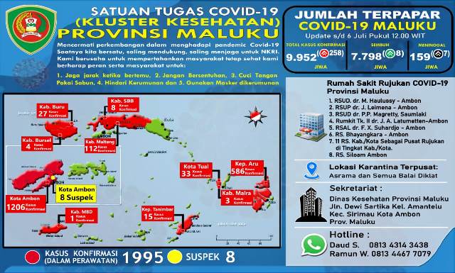 Dengan penambahan 7 korban meninggal tersebut, maka sampai pukul 12.00 WIT, Satgas Maluku mencatat sudah terdapat 159 warga Maluku yang meninggal karena virus tersebut. (PJ)