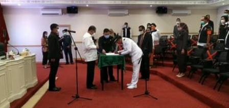 AMBON– Johanes Markus Jakobus Hahiariy resmi dilantik Walikota Ambon, Richard Louhenapessy sebagai Raja Negeri Hukurila periode 2020-2026. Pelantikan berlangsung, Jumat (6/11/2020) di ruang rapat Vlisingen-Balai Kota Ambon.
