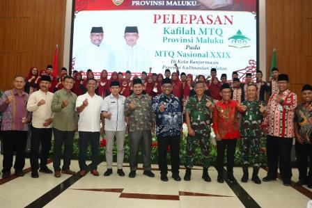 AMBON-Gubernur Maluku Murad Ismail melepas 51 kafilah yang akan mengikuti Musabaqoh Tilawatil Quran (MTQ) tingkat nasional XXIX di Kota Banjarmasin, Provinsi Kalimantan Selatan, yang akan berlangsung dari tanggal 12 – 18 Oktober mendatang.