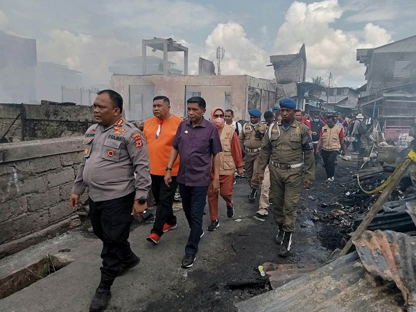 Penjabat Wali Kota Ambon, Bodewin Melkias Wattimena bersama Kapolresta Kombes Raja Arthur Simamora, Sekertaris Kota (Sekot) Ambon, Agus Ririmasse dan seluruh pimpinan OPD, meninjau lokasi kebakaran itu. “Terjadi kebakaran sekira pukul 04.30 pagi tadi. Sampai dengan saat ini kondisi api sudah tertangani, sudah tidak lagi menjadi ancaman. Sementara ini korban meninggal 1 dan korban terbakar 1 orang. Untuk lapak, kios dan rumah itu sementara kurang lebih 150 buah,”kata dia, kepada wartawan disela-sela peninjauan itu.