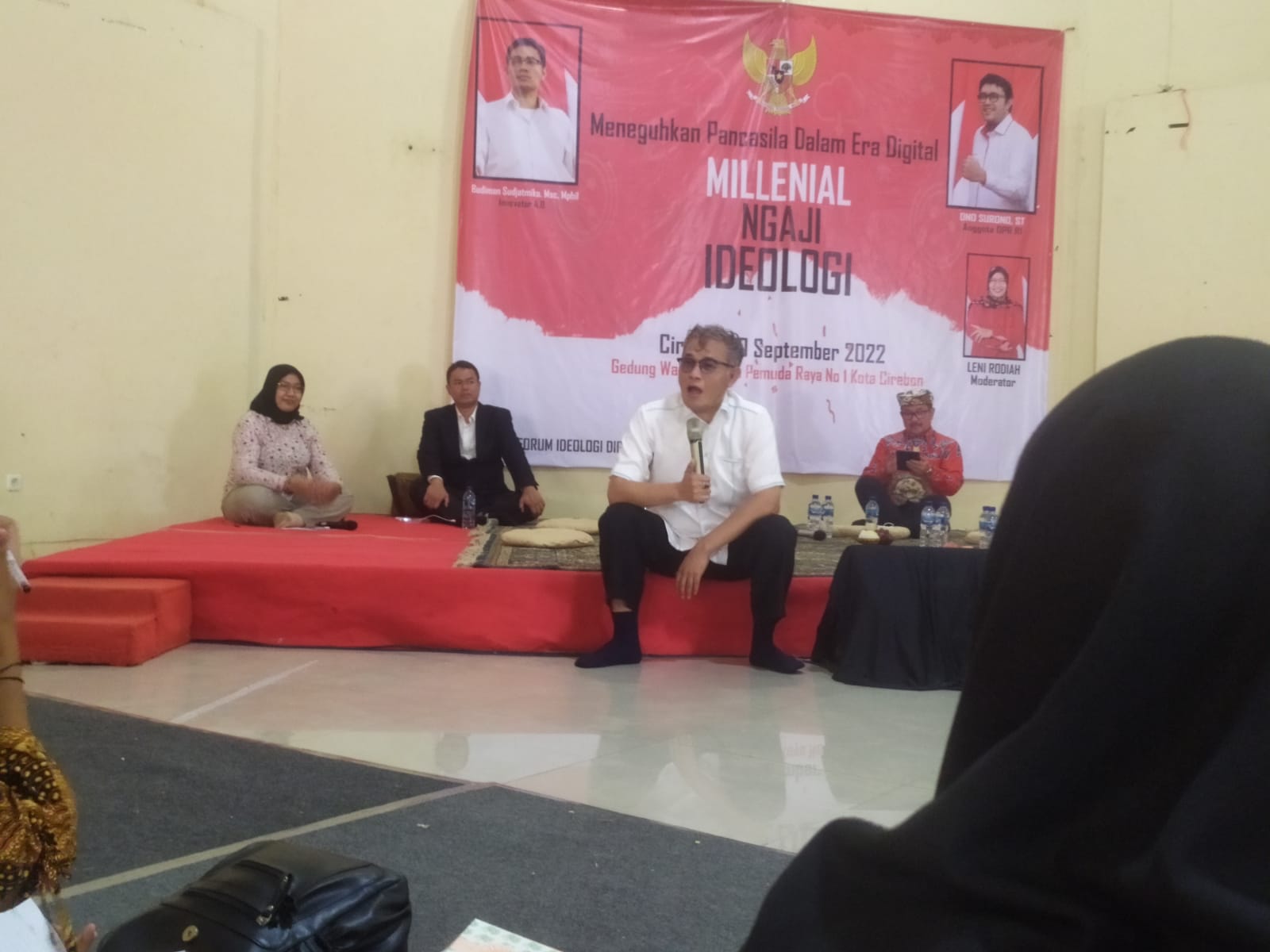 Ratusan pemuda Cirebon mengaji teknologi kepada Anggota Dewan SMSI Pusat, Budiman Sudjatmiko di Gedung Wanita, Sabtu 10 September 2022.