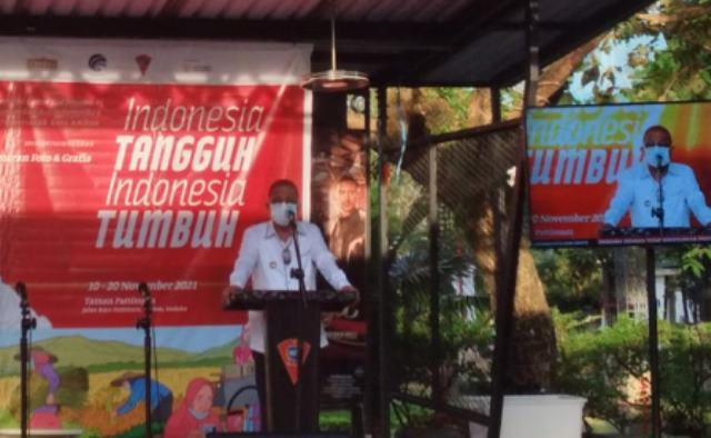 AMBON-Perum LKBN Antara gelar pameran foto dan grafis dengan tema “Indonesia Tangguh, Indonesia Tumbuh” yang dibuka secara resmi oleh Walikota Ambon, Richard Louhenapessy yang dibuka secara resmi oleh Wali Kota Ambon Richard Louhenapessy di Pattimura Park, Rabu (10/11/2021).