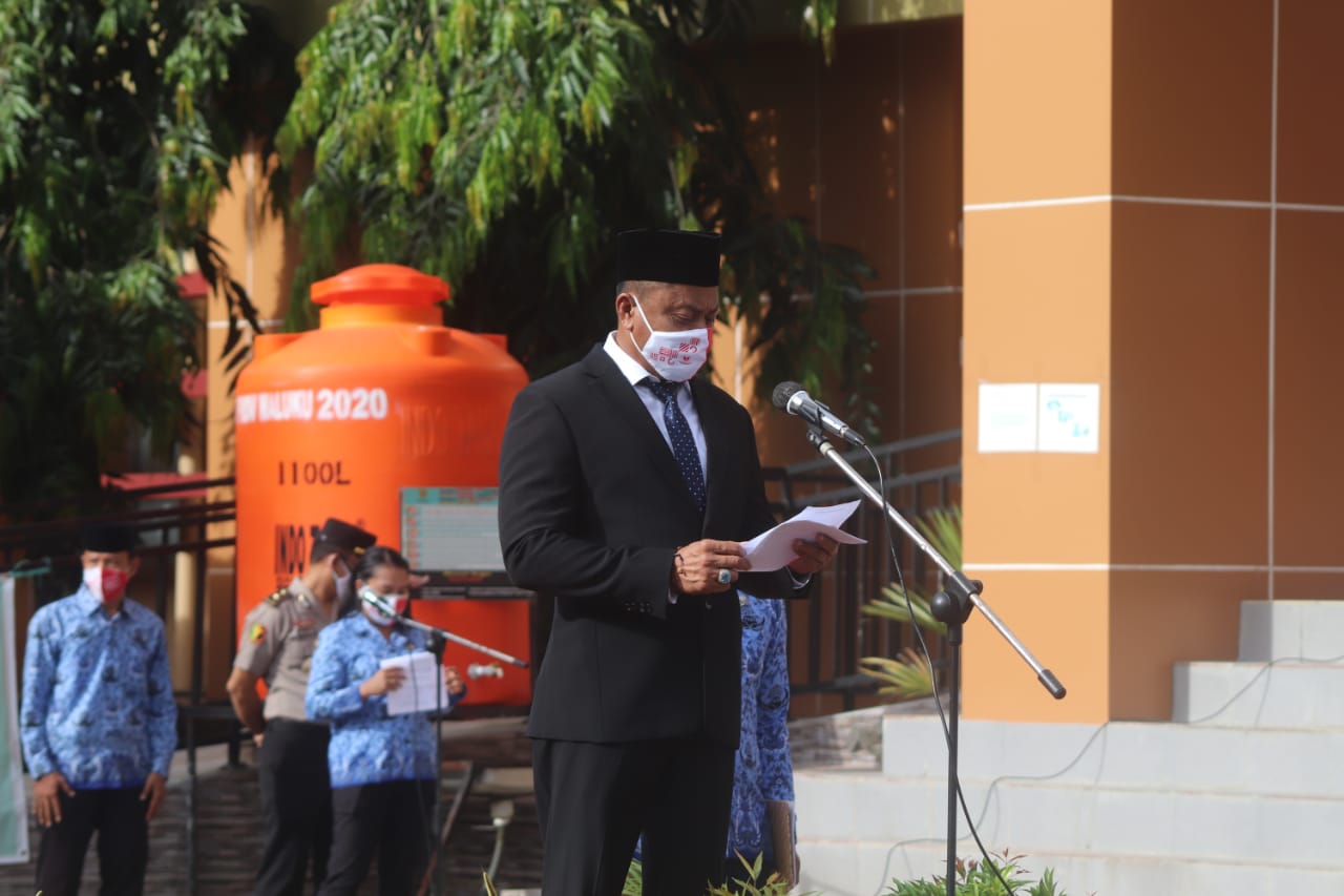 Sekda selaku Irup HKN Ke-56 Tahun 2020 membacakan Pidato Serentak Menteri Kesehatan RI, Terawan Agus Putranto mengatakan, HKN ke-56 Tahun 2020 merupakan momentum untuk kita bersyukur di era pandemi dan mengingatkan kita semua tentang pentingnya kesehatan.