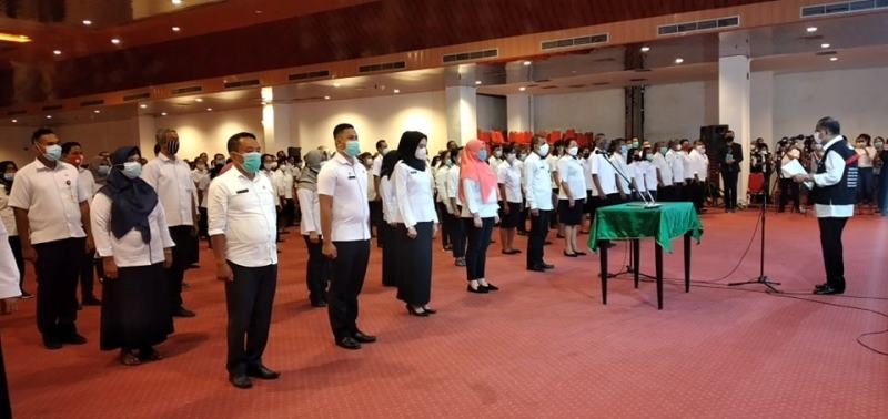 AMBON-Sebanyak 168 Pejabat Administrasi dan Pejabat Pengawasan (Pejabat Eselon IV) lingkup Pemerintah Kota (Pemkot) Ambon dilantik. Pelantikan ini berdasarkan Surat Keputusan (SK) Walikota Ambon Nomor 38 dan 39 Tahun 2021, pelantikan berlangsung di aula Maluku City Mall, Rabu (13/1/2021).