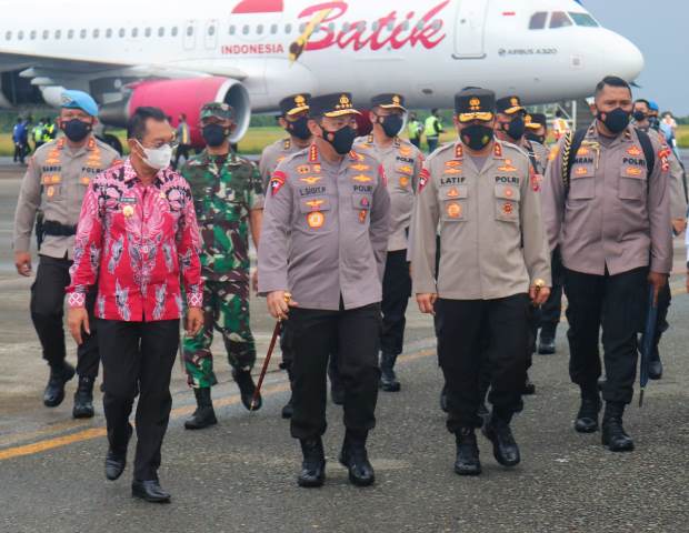 Kapolri dan rombongan tiba menggunakan pesawat Batik Air Bus A320.