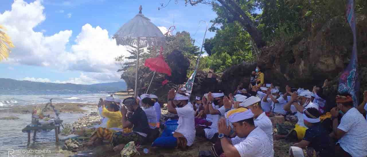 Perayaan Melasti dipusatkan di Pantai Batu Capeu, Kecamatan Nusaniwe Kota Ambon ini hanya diikuti puluhan umat Hindu demi menghindari kerumunan saat pandemi.