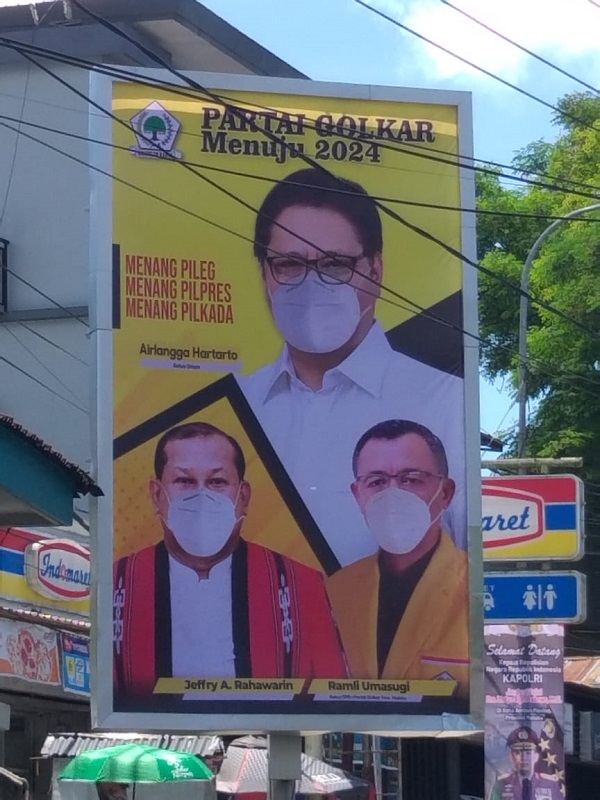 Baliho besar di jalan Rijali tepatnya di pertigaan naik ke Karang Panjang, terpajang baliho dengan foto pasangan calon Gubernur dan Wakil Gubernur Maluku yang sudah menjadi rahasia umum akan diusung Partai Golkar yakni Jefry Rahawarin-Ramly Umasugi.