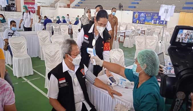 Sementara itu Sekretaris Kota Ambon, AG Latuheru akhirnya mendapatkan penyuntikan vaksin Sinovac yang di pusatkan di Sporthall Karang Panajang Ambon, senin (15/3).