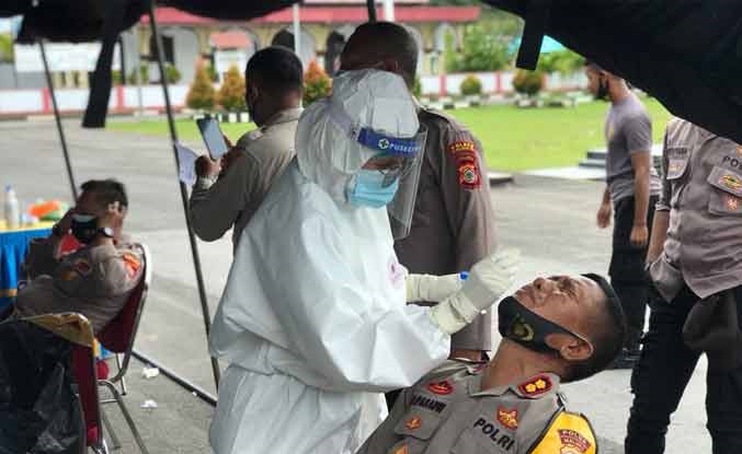 DOBO – Seluruh personel Polres Aru menjalani swab test sebagai bagian dari penanganan dan pencegahan Covid-19.