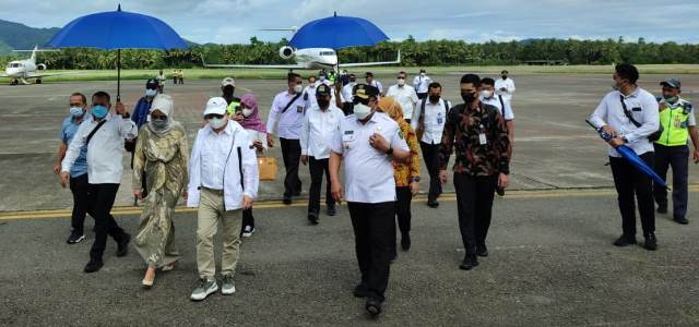 Rombongan tiba dengan menggunakan pesawat khusus, pukul 15.30 Wit, kedatangan menteri di sambut hangat Gubernur Maluku Murad Ismail beserta isteri Widya Pratiwi beserta Forkopimda Provinsi Maluku, Sekda Maluku, Kasrul Selang dan sejumlah pimpinan OPD lingkup Pemprov Maluku di Bandara Internasional Pattimura, Ambon.