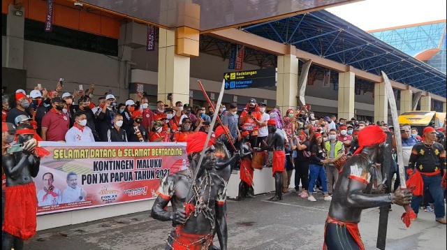 Tarian Cakalele, Sambut Kloter 3 Kontingen Maluku di Jayapura