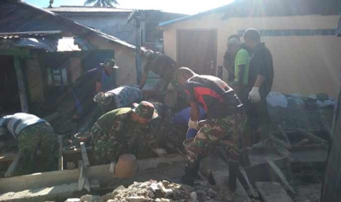 Proses pekerjaan ini dilakukan oleh puluhan personil TNI dalam program TNI Manunggal Membangun Desa (TMMD) ke 110 di lingkup Kodim 1503 Tual.