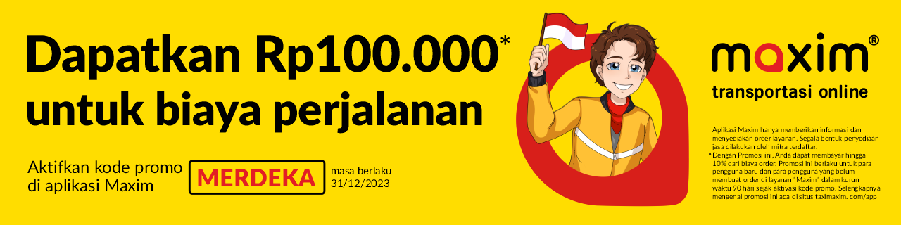 Anda juga bisa semakin hemat dengan memasukkan kode promo “MERDEKA” untuk mendapatkan saldo bonus sebesar Rp 100.000 yang bisa anda gunakan sebagai potongan sebesar 10% dari biaya yang tertera dalam aplikasi. Caranya, buka ‘Menu’ dan pilih ‘Kode Promo’, kemudian masukkan kode promo dan saldo bonus bisa anda gunakan! Anda dapat mengunduh aplikasi Maxim melalui App Store, Play Store, Galaxy Store, GetApps,