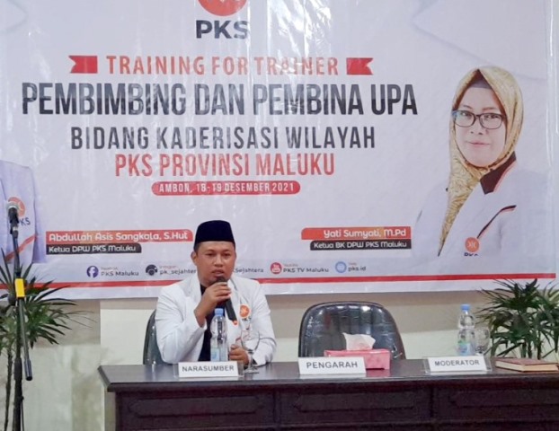 Ambon Ketua DPW Partai Keadilan Sejahtera (PKS) Maluku Abdullah Asis Sangkala, S.Hut, membuka kegiatan Training for Trainer (TFT) Pembimbing dan Pembina Unit Pembinaan Anggota (UPA) se-Maluku, bertempat di Kantor DPW PKS, Desa poka, Kota Ambon, Sabtu (18/12/2021).