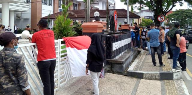 “Peraturan PPKM Mikro dilaksanakan di Bali dan Sumatera bukan di kota Ambon, tetapi pimpinan tinggi melakukan kebijakan yang pro dengan masyarakat,” kata Ariel Lesilawan dalam orasinya.