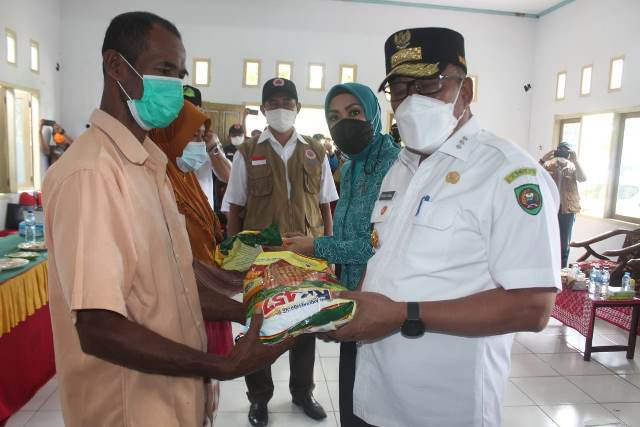 TEHORU– Gubernur Maluku Murad Ismail bersama istri Widya Pratiwi Murad Ismail, mendatangi lokasi pengungsi yang ada di wilayah terdampak (Tehoru), Senin, (21/6/2021), pasca gempa bumi 6,1 SR yang mengguncang Kecamatan Tehoru, Kabupaten Maluku Tengah, Rabu (16/6/2021) lalu.