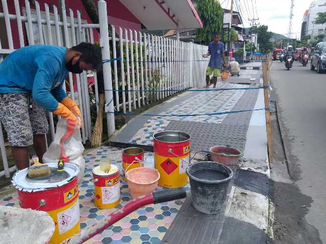 AMBON-Setelah sebelumnya sempat jadi polemic, karena dinilai licin dan bahaya bagi pejalan kaki, trotoar yang dibangun Pemerintah Provinsi Maluku melalui Dinas Pekerjaan Umum (DPU) saat ini mulai memasuki tahap akhir, yakni proses coating anti selip.