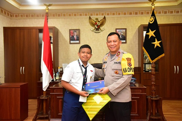 Saat audiensi berlangsung, Kapolda didampingi Karo Ops, Kombes Pol Asep Saepudin Sik, dan Kasubbid Mulmed, Kompol Meiytha Herlina Samury SH. “Kami menyampaikan selamat atas Genaro yang meraih juara 2 Lomba Menulis Surat Untuk Kapolri Tingkat SMP se-Indonesia,” kata Kapolda.