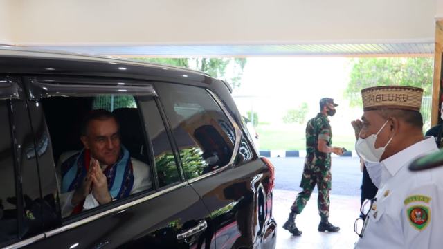 AMBON – Duta Besar Vatikan untuk Indonesia Mgr. Tarcisio Bertone S.D.B. Piero Pioppo tiba di Ambon. Kedatangannya di provinsi Maluku ini disambut Gubernur Maluku, Murad Ismail di VIP Room Bandara Udara Internasional Pattimura Ambon, Jumat, (22/04/2022).