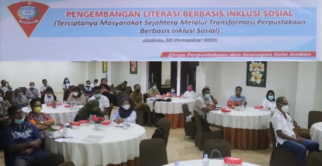 AMBON-Dinas Perpustakaan dan Kearsipan Kota Ambon melakukan kegiatan Diskusi Panel ‘Pengembangan Literasi Berbasis Inklusi Sosial’ yang dilaksanakan di Hotel Pasifik Ambon, Senin (22/11/2021).