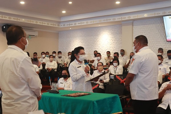 AMBON-Walikota Ambon, Richard Louhenapessy, memimpin Serah Terima Jabatan (Sertijab) dari Plh Sekretaris Kota (Sekot), Rulien Purmiassa kepada Agus Ririmasse, selaku Sekot Defenitif.