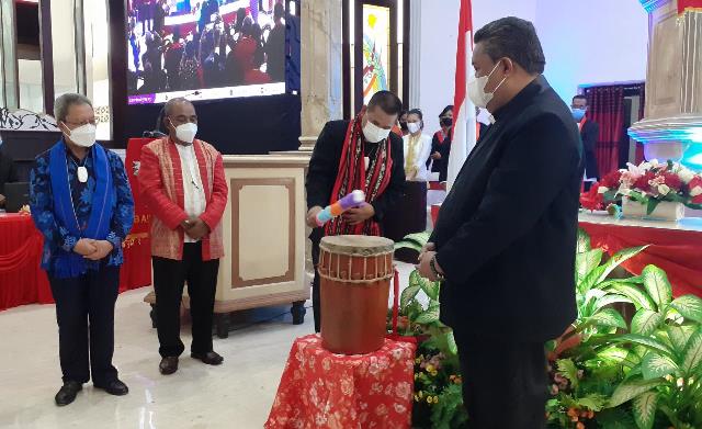 AMBON-Sidang ke-9 Gereja Protestan Maluku (GPM), Klasis Pulau Ambon Timur (KPAT) resmi tergelar, Ahad 23 Mei 2021 di Jemaat GPM Hutumuri. Wakil Ketua Majelis Pekerja Harian (MPH) Sinode, Pendeta HH Hetharie memukul tifa tanda dimulainya sidang tahunan tersebut.