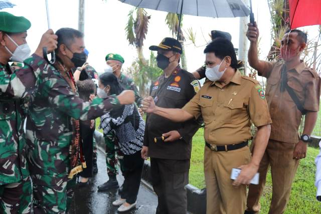 Pelaksana Harian (Plh) Provinsi Maluku Sadlie Lie, sambut kedatangan Pangdam dan Istri. Penjemputan berlangsung di VIP Bandara Udara Internasional Pattimura Ambon, Senin (23/8/2021).