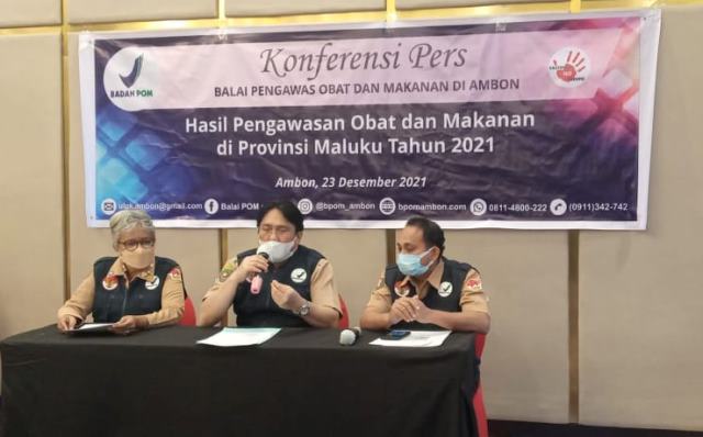 AMBON– Menjelang perayaan Hari Natal tahun 2021 dan Tahun baru 2022, Balai Pengawas Obat dan Makanan (BPOM) Ambon terus melakukan pemantauan terhadap intensifikasi pengawasan pangan olahan untuk memastikan produk pangan di peredaran aman dan bermutu.