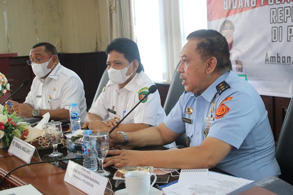 AMBON– Pemerintah Provinsi Maluku bersama Tim Kementerian Koordinator Bidang Politik, Hukum, dan Keamanan (Kemenko Polhukam) melakukan pertemuan melalui rapat bersama di ruang rapat lantai VI Kantor Gubernur Maluku, Rabu (23/03/2022). Tujuan dilaksanakannya rapat tersebut, untuk membahas tentang Maluku Lumbung Ikan Nasional (M-LIN).