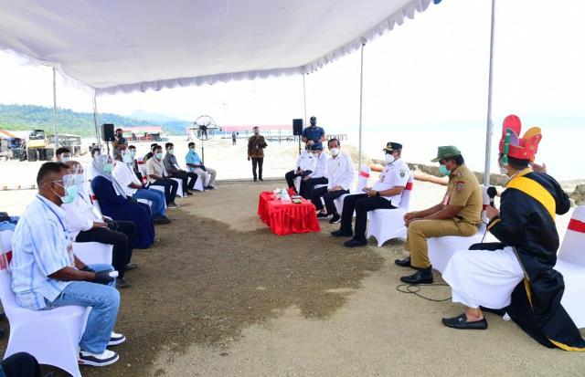 AMBON(info-ambon.com)-Presiden Joko Widodo berdialog dengan para nelayan Provinsi Maluku untuk mengetahui situasi yang dihadapi nelayan setempat di kala pandemi saat ini. Dialog tersebut berlangsung di Dermaga Huseka’a Hitu, Kabupaten Maluku Tengah, pada Kamis, 25 Maret 2021.