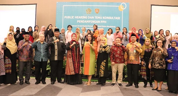 AMBON– Ketua Dewan Kerajinan Nasional Daerah (Dekranasda) Provinsi Maluku, Widya Pratiwi Murad membuka kegiatan Public Hearing dan Temu Konsultasi Pendampingan Proses Produksi Halal (PPH), yang berlangsung di Hotel Santika, Ambon, Kamis (25/8/2022).