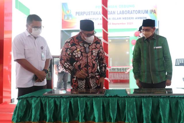 AMBON– Gubernur Maluku Murad Ismail, Sabtu (25/9/2021), meresmikan Gedung Perpustakaan Dan Gedung Laboratorium MIPA Institut Agama Islam Negeri (IAIN) Ambon di Kampus IAIN Ambon, STAIN.