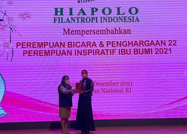 Penghargaan ini diberikan dalam rangka merefleksikan momentum bersejarah yakni Kongres Perempuan Indonesia dan Hari Ibu 22 Desember 2021 oleh Hiapolo Filantropi Indonesia yang dikemas dalam acara bertajuk “Perempuan Bicara dan Penghargaan 22 Perempuan Inspiratif Ibu Bumi.