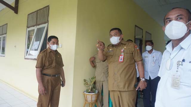 Ambon –Guna mempersiapkan Sekolah dalam Pembelajaran Tatap Muka Terbatas (PTMT) di Kota Ambon pada tahun 2022 mendatang. Sekertaris Kota Ambon, Agus Ririmasse didampingi Kadis pendidikan, Kadis Perhubungan, Kasat Satpol PP, Dinas Kesehatan, Kepala DLHP meninjau sejumlah Sekolah Menengah Pertama (SMP), Senin (27/12/2021). Kunjungan kerja perdana yang dilakukan ini untuk memastikan kesiapan PTMT tersebut.