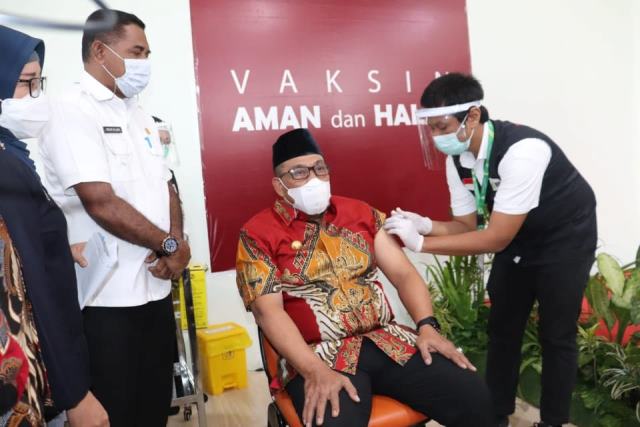 AMBON-Gubernur Maluku, Murad Ismail dan jajaran Forkopimda Maluku mengikuti penyuntikan kedua untuk vaksin Covid-19 pada Jumat, (29/1/2021). Sebelumnya Murad Ismail menjadi orang pertama di Maluku yang mendapat suntik vaksin Covid-19 tahap pertama tepatnya pada Jumat 15 Januari lalu.