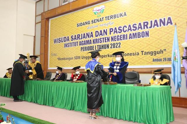 AMBON– Institut Agama Kristen Negeri (IAKN) Ambon Jumat (29/7/2022), melepaskan 57 wisudawan.