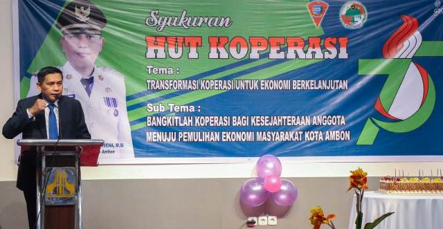 AMBON-Penjabat Wali Kota Ambon, Bodewin Wattimena menyampaikan, koperasi , harus tetap eksis dan berkembang di tengah-tengah tantangan globalisasi. Dimana, dalam menghadapi tantangan yang luar biasa, bukan hanya pandemi Covid-19 sejak 2 tahun lalu dan berdampak pada perekonomian, tetapi juga tantangan persaingan usaha karena hadirnya gerai-gerai swalayan modern, seperti Indomaret dan Alfamidi di Kota Ambon.