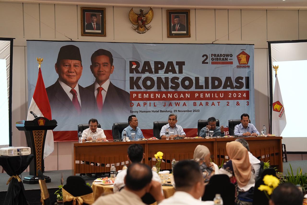 Sekjen Partai Gerindra Ahmad Muzani menghadiri rapat konsolidasi bersama kader Gerindra dapil Jawa Barat I (Kota Bandung, Kota Cimahi) dan II (Kabupaten Bandung, Kabupaten Bandung Barat), Rabu (29/11).