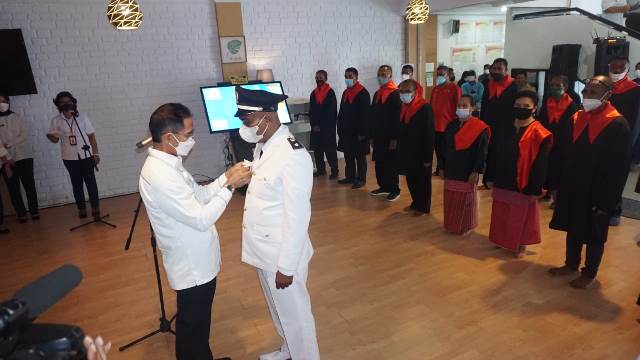 AMBON- Raja Negeri Hatalai, Kecamatan Leitimur Selatan-Kota Ambon, akhirnya dilantik. Richard Hendry Loppies, dilantik Wakil Walikota (Wawali) Ambon, Syarif Hadler, Selasa (30/3/2021) di Balai Kota.