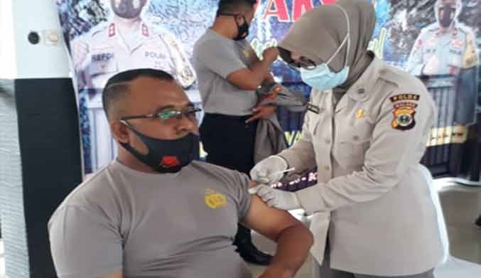 Ambon – Sebanyak 1500 personel Polda Maluku yang telah terdaftar, menjalani proses vaksinasi massal yang diselenggarakan oleh Biddokkes Polda Maluku di Lapangan Letkol Chr Tahapary Tantui Ambon, Selasa (30/3).