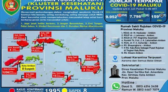 AMBON-Hari ini, Provinsi Maluku menambah 252 orang terkonfirmasi atau positif Covid-19. Demikian rilis Satgas Penanganan Covid-19 Provinsi Maluku yang diterima info-ambon.com, grup