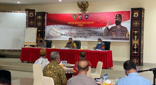 Ambon – Polda Maluku menggelar Bacarita (Diskusi-red) Kamtibmas pencegahan dan penanganan Covid-19, yang dipusatkan di Mapolda Maluku, Kamis (16/7/2020). Bacarita Kamtibmas dengan