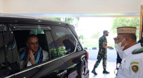 AMBON – Duta Besar Vatikan untuk Indonesia Mgr. Tarcisio Bertone S.D.B. Piero Pioppo tiba di Ambon. Kedatangannya di provinsi Maluku ini disambut