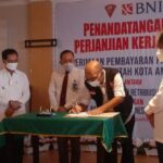 Ambon – Pemerintah Kota Ambon mengandeng Bank Negara Indonesia (BNI) melaunching Elektronik Pajak Bumi dan Bangunan (PBB) online. ditandai dengan penandatanganan perjanjian